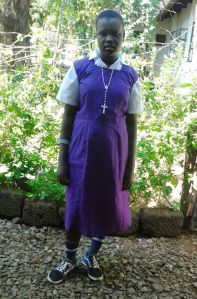 I am Jacinta Lobun 15 years old, born in Daaba, Isiolo County, Kenya in 2002. I was brought up in a single parent family. My Mother burns charcoal which are sold to the market, though it is prohibited in Kenya because of protection of environment. Since the soil is not good for cultivation, there is no any other way to meet our daily needs, my mother forced to do this to get daily bread. I have two sisters. We are in a grass thatched house which is single roomed it is used as kitchen and bed room. I used to help my mother bringing fire wood and water with 5 liter cans.