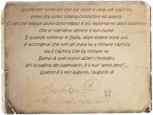 Non starò ad elencare luoghi e nomi ma rivolgo un invito a ogni essere umano: recarsi in Africa può significare un grande cambiamento del nostro modo di vivere, di pensare, di capire!