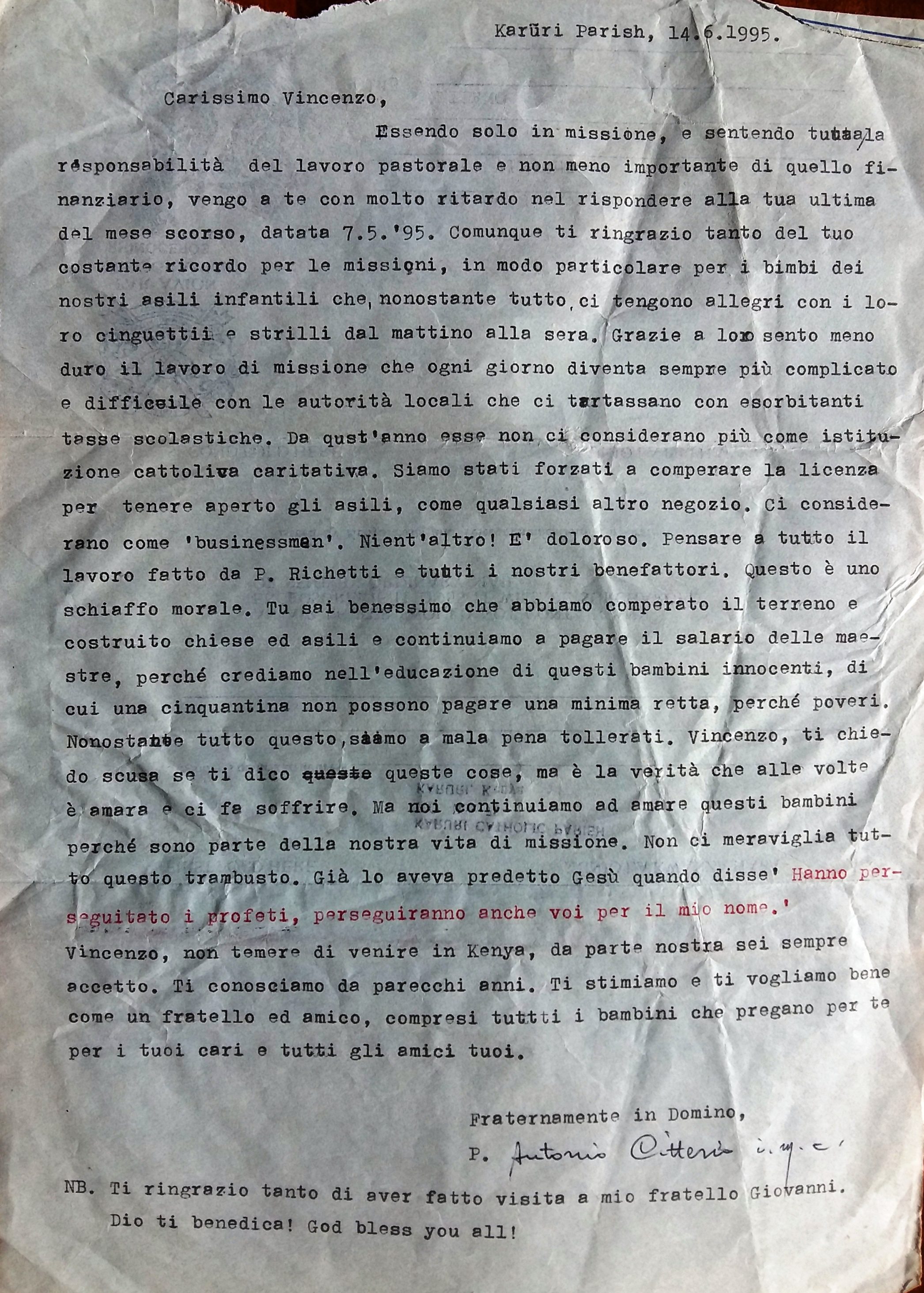 Bastano queste poche righe a farci capire chi fosse padre Antonio… Missionario della Consolata, originario di Casatenovo (Lc) che purtroppo ci ha lasciati nel 2008.