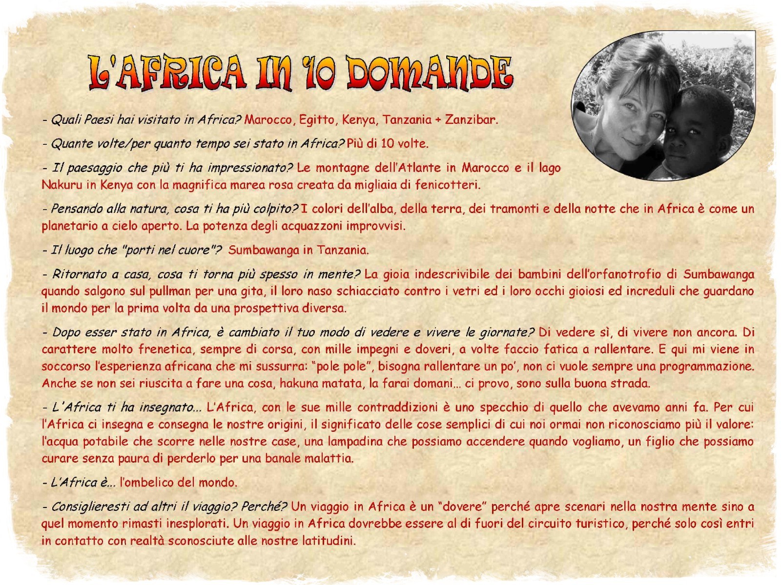 Francesca mi accennò al fatto che stava preparando un viaggio in Africa con un ragazzo ormai veterano di esperienze di volontariato in Kenya.
